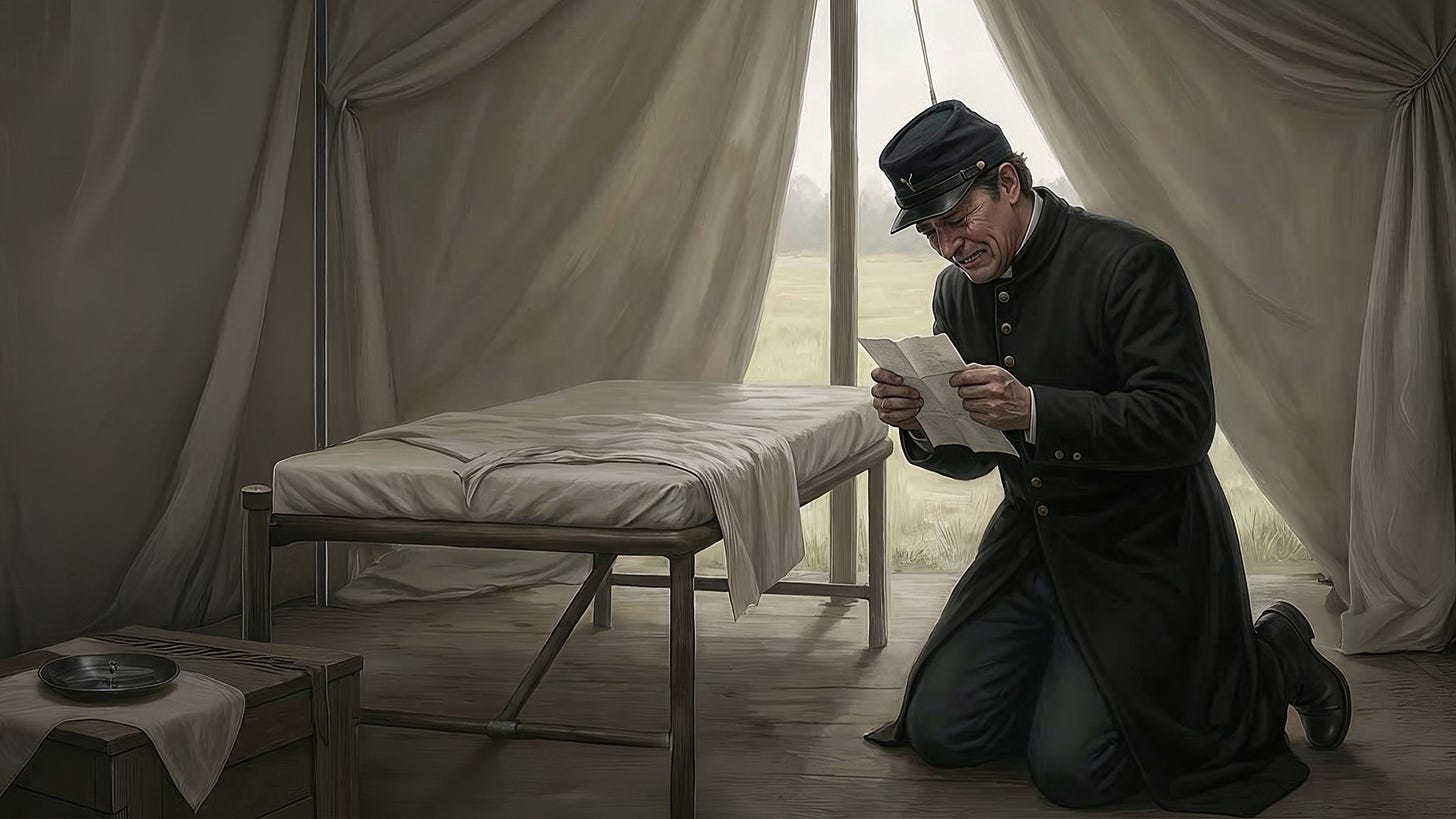 I have ushered countless soldiers toward their salvation, kneeling beside them as their life’s blood seeped into Virginia soil, whispering promises of heavenly reunion. I have written to families beyond counting, informing them of losses no words can adequately convey, always including those blessed assurances from Scripture. “Blessed are those who mourn, for they shall be comforted.” The ink has scarce dried on dozens of such letters bearing my hand.